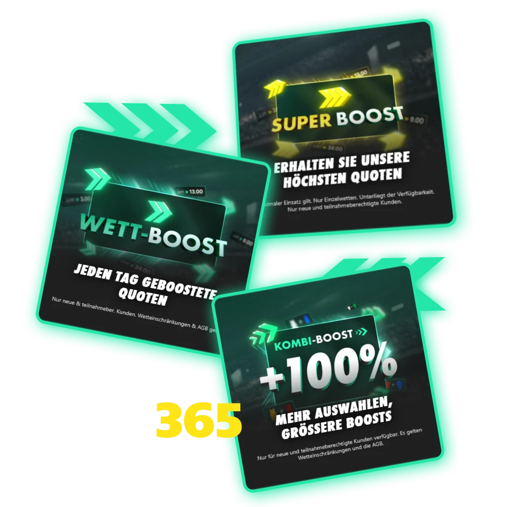 Eröffnen Sie ein Konto bei Bet365 und sichern Sie sich Wettguthaben für Ihr Konto. Die Mindesteinzahlung sowie die damit verbundenen Anforderungen sind äußerst moderat, sodass sie für jeden Nutzer leicht zu erfüllen und erschwinglich sind. Die Plattform ist legal, sicher und kann auf Tausende positiver Bewertungen von Nutzern in Deutschland verweisen. Der Buchmacher passt sein Bonussystem kontinuierlich an, um optimale und gewinnbringende Ergebnisse zu gewährleisten. Falls Sie neu auf der Plattform sind, können Sie sich einen Bonus von bis zu 100 € in Form von Wettguthaben sichern. Registrieren Sie sich einfach, tätigen Sie eine Einzahlung von mindestens 5 € und erhalten Sie bis zu 100 € an Wettguthaben. In diesem Testbericht erklären wir Ihnen detailliert, wie Sie den Nutzen dieser Bonusangebote maximieren und dabei sämtliche regulatorischen Vorgaben vollständig einhalten.